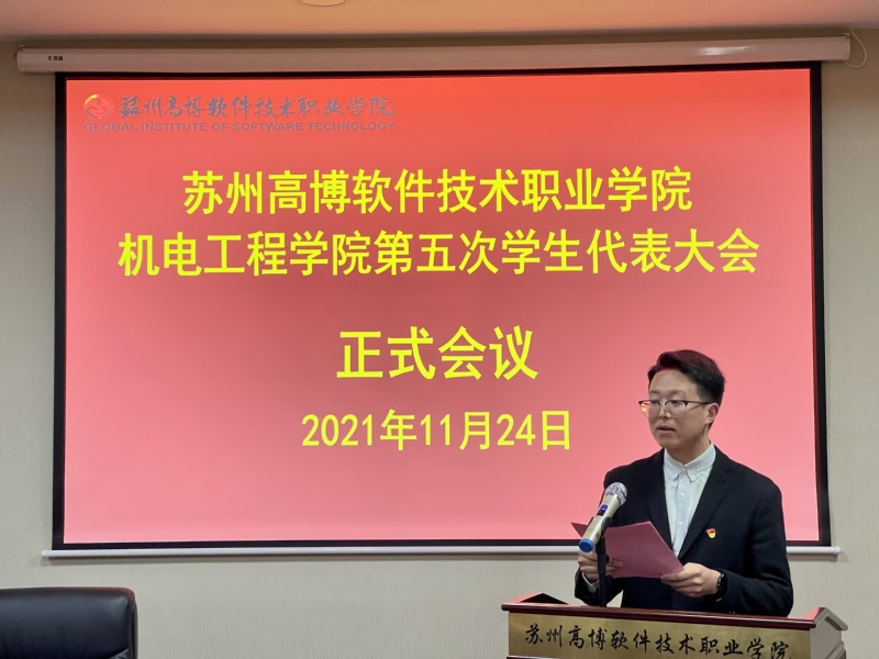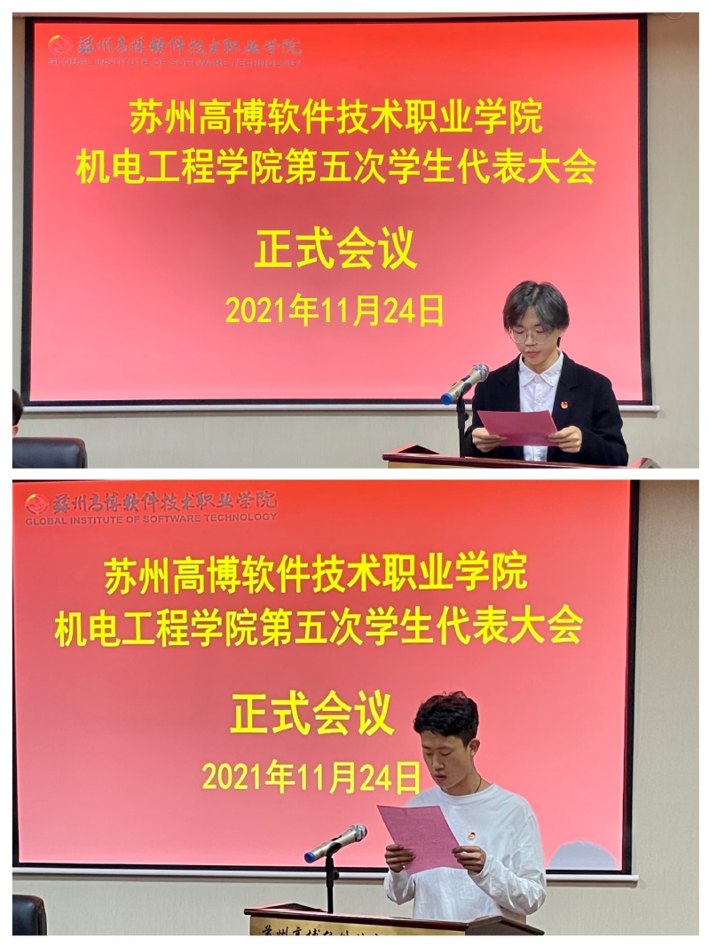 紧接着,机电工程学院学生党支部书记王一迪同志宣读了《关于苏州高博软件技术职业学院机电工程学院第五次学生代表大会选举结果的报告》。