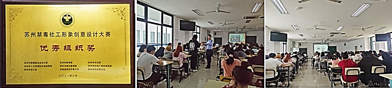 2021年2月,苏州市禁毒办会同教育局、司法局、人社局、城管局、文广旅局、工会、团委、妇联等禁毒委成员单位联合开展“苏州禁毒社工形象创意设计大赛”暨全民禁毒宣传系列活动。5月7日,市禁毒委员会办公室李警官来我院进行禁毒知识宣讲并开展“苏小爱”IP形象设计大赛动员。