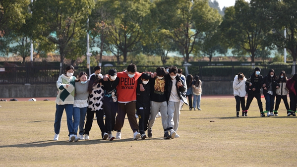 紧接着开展的“十人九足”活动和“双人成行”比赛进一步提升了学生们的集体荣誉感。学生们在游戏的过程中,也充分享受了团队合作的乐趣。
