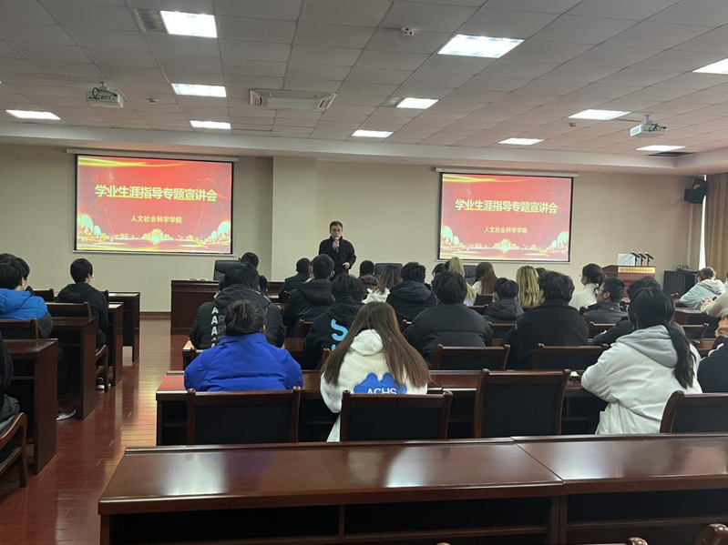 为引导beat365官网外语类专业在校大学生进一步端正学习态度,熟练掌握外语学习的方法和技巧,同时引导学生增强国际化意识,努力成为国际化人才,12月8日下午,人文社会科学学院在行政楼215会议室举办“大学生学业生涯指导”主题宣讲会。宣讲会由beat365官网校长助理兼人文社会科学学院院长、特聘教授黄兴主讲。人文社科学院学工办主任赵雪飞主持宣讲会,人文社科学院外语系大一、大二年级全体在校生参加了宣讲会。
