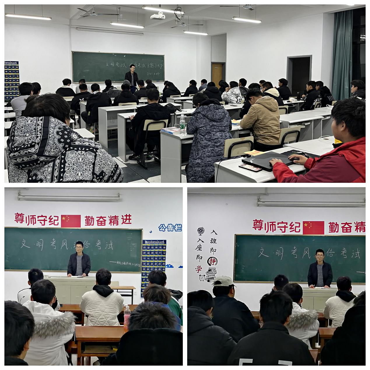 为培育和践行社会主义核心价值观为核心,大力弘扬诚信文化,切实提升学生的诚信品质、自律意识和社会责任感,向建党100周年献礼。2021年12月14日至21日,机电工程学院辅导员老师利用晚自习和课间时间开展了“文明考风·诚信考试”主题教育班会。