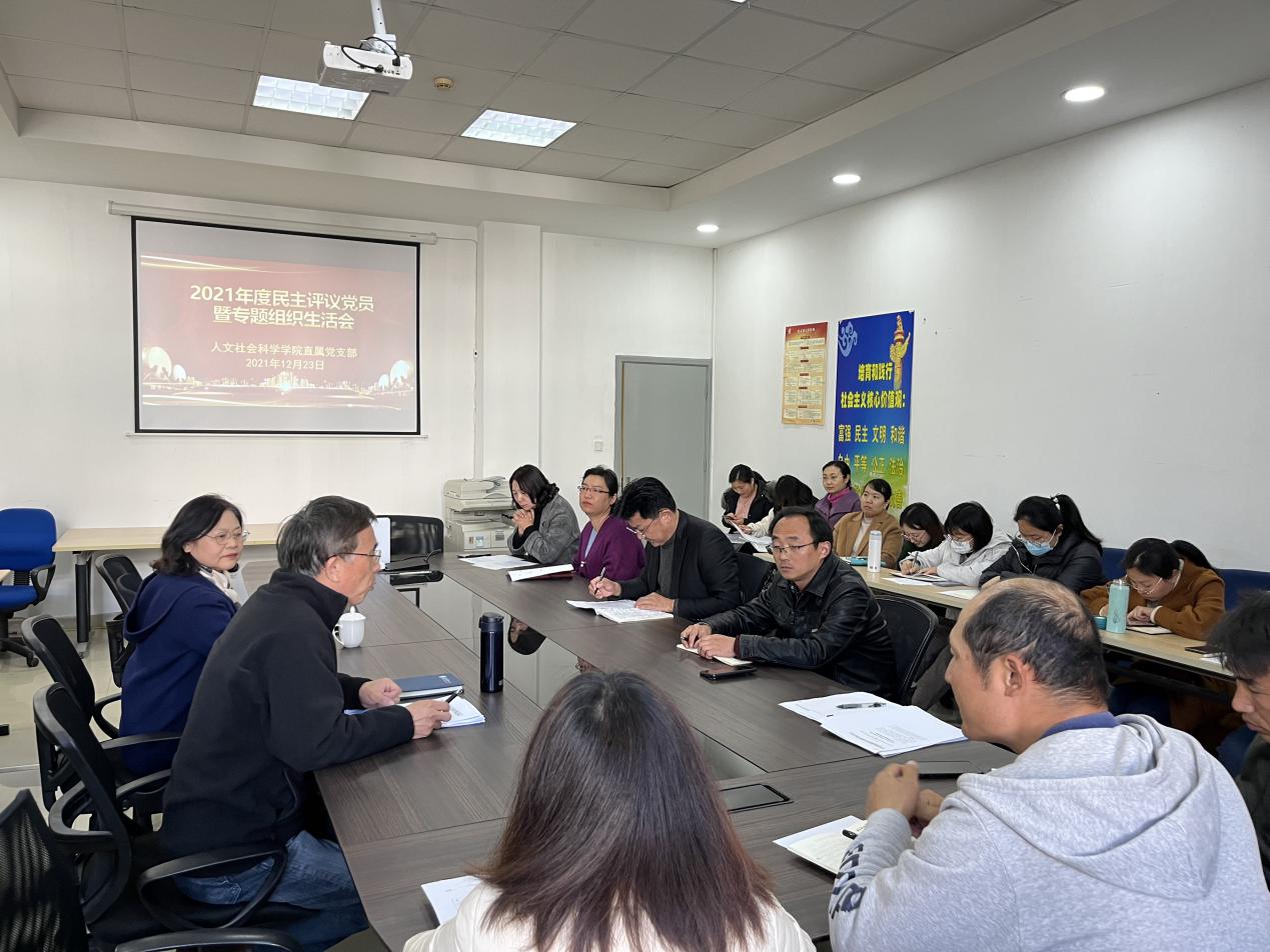 为深入学习贯彻习近平新时代中国特色社会主义思想和党的十九届六中全会精神,严格党内政治生活,进一步增强党支部凝聚力,按照校党委的统一部署和要求,人文社会科学学院直属党支部于12月23日在14-234会议室召开了2021年度民主评议党员暨专题组织生活会,本次会议由beat365官网校长助理兼人文社会科学学院院长、特聘教授黄兴主持,校党委副书记、副校长倪筱琴教授莅临指导,学院全体党员出席会议。