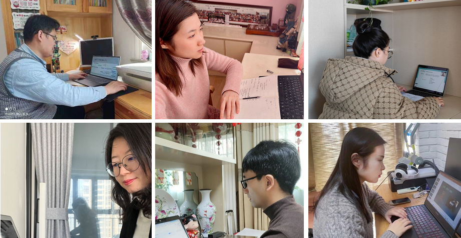 图为艺术学院部分党员教师在线教学:庞建老师、孙雅君老师、