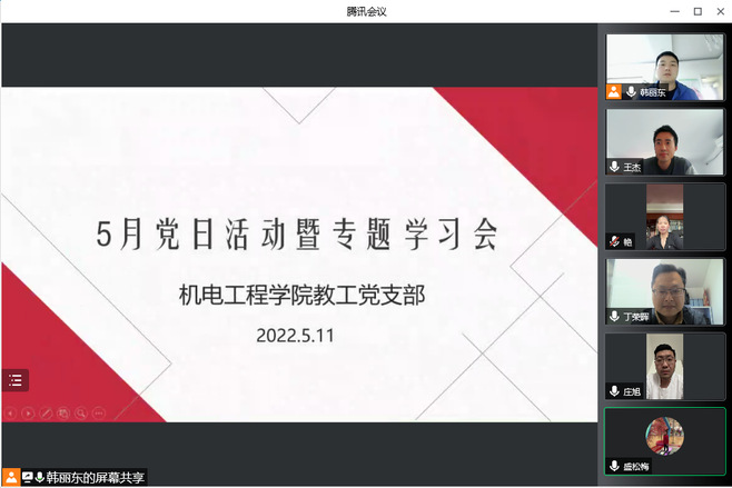 2022年4月20日十三届全国人大常委会第三十四次会议通过了《中华人民共和国职业教育法》(以下称“新职教法”)的修订,并将于2022年5月1日起施行。为贯彻落实《新职教法》和习近平总书记在中国人民大学考察时重要讲话精神,5月11日中午,机电工程学院教工党支部开展党日活动暨专题学习会。党支部书记韩丽东老师主持会议,全体党员参与会议。