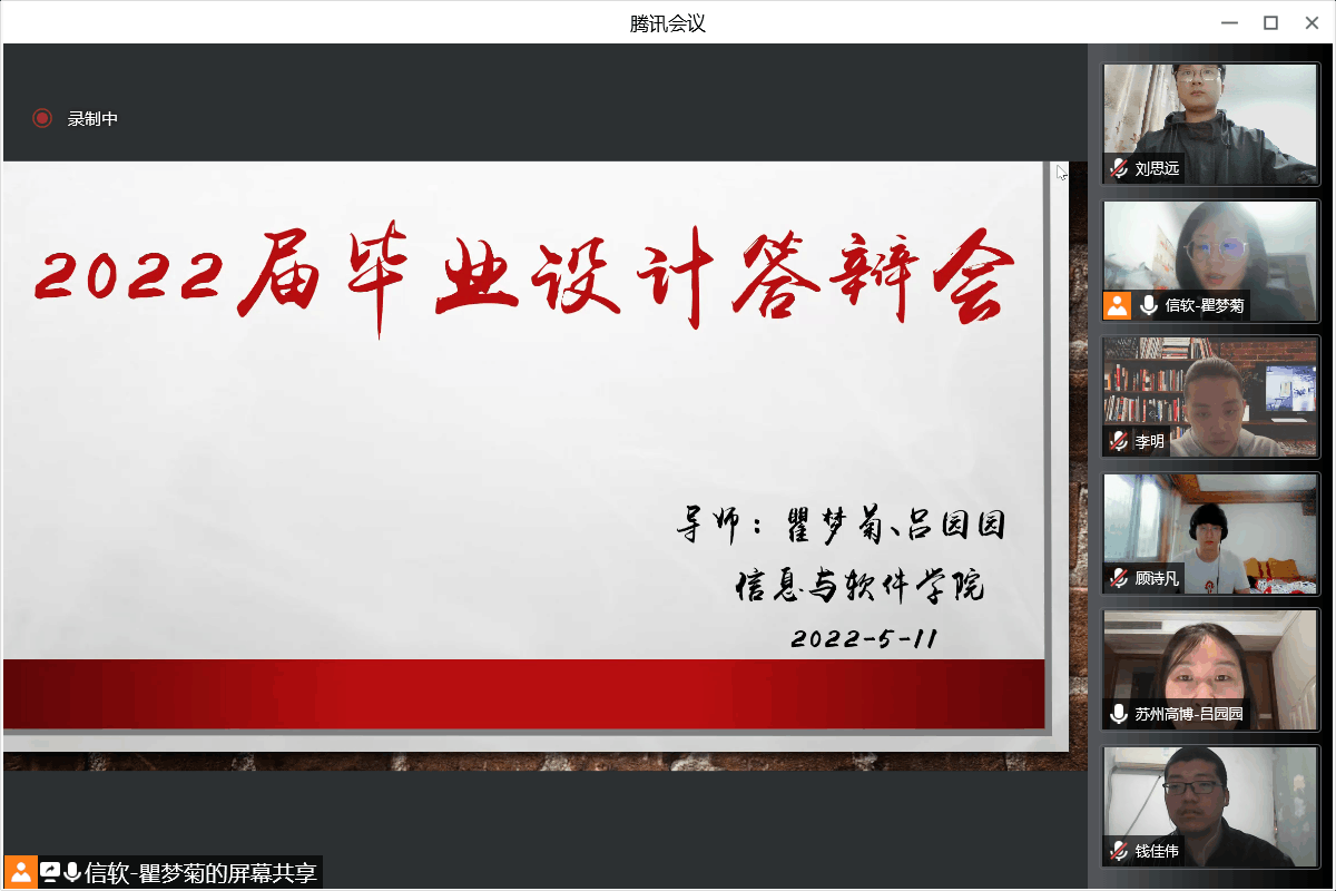 “线上云答辩,毕业不延期”。为切实保障广大师生的生命安全和身体健康,最大限度减少疫情对毕业生工作的影响,信息与软件学院于5月11日开展了2022届毕业生线上答辩工作。在各位同学、老师的共同努力、密切配合下,本次“云答辩”圆满完成。