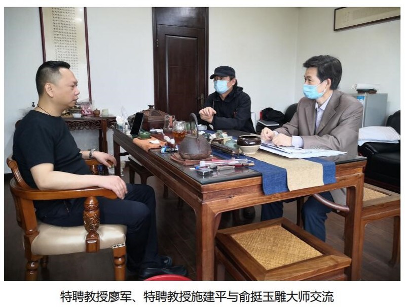 在浩瀚的历史长河中,中华民族五千年文明孕育出无数艺术瑰宝,非物质文化遗产见证了中华民族的历史变迁。玉雕是国家非物质文化遗产中最古老的雕刻品种之一,因其“空灵、飘逸、细腻精巧”的艺术手法受到人们的青睐。5月10日上午10:30,学校特聘教授廖军、艺术学院党总支书记、副院长施建平特聘教授走访慰问江苏省非遗(苏州玉雕)传承人、江苏省第七批产业教授落户艺术与建筑学院的俞挺大师。