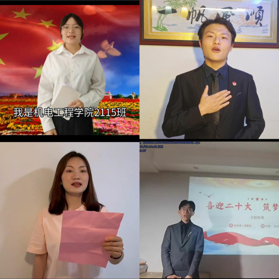 根据校学生工作部(处)、团委关于开展“喜迎二十大、永远跟党走、奋进新征程”主题教育实践活动的通知要求,为迎接党的二十大胜利召开,进一步增强青年学生的责任感和使命感,2022年4月28日至5月13日,医学与公共服务学院分团委与信息与软件学院分团委共同组织开展“喜迎二十大·筑梦向未来”线上主题诵读比赛,同学们踊跃参加。