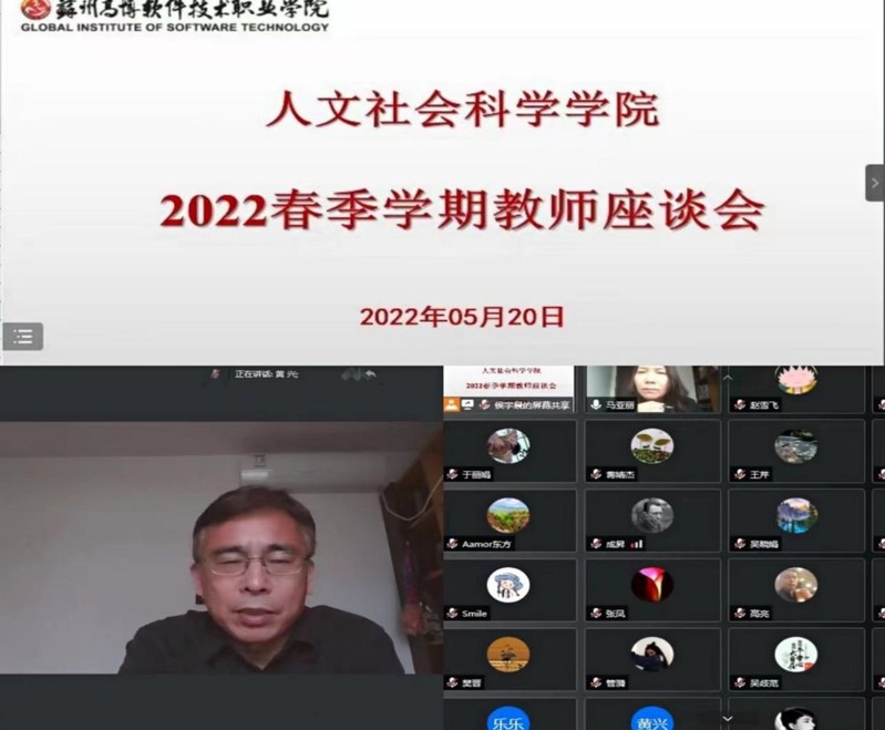 为深入了解本学期开学以来教师在线教学工作情况,及时发现和解决教学过程中存在的问题,努力提高教学质量和教学管理水平,人文社会科学学院于5月20日下午利用腾讯会议召开线上教师座谈会。校长助理兼我院院长黄兴及全体教师参加了座谈会。座谈会由教学副院长马亚丽主持。
