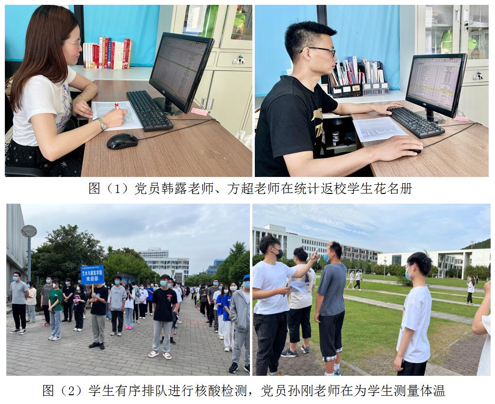 疫散花开,学生复学归来,阔别校园已久的高博学子们重新回归课堂。根据学校统一部署安排,5月27日、5月29日、6月5日,分别对第一批次、第二批次及第三批次返校的学生进行一周的全员核酸检测,满一周后按学号尾号抽检。辅导员老师每天负责对学生进行早中晚三次体温测量,在班级群里通知学生参加核酸检测,学生井然有序自觉保持一米线距离排队。辅导员老师主动关爱学生,传递温暖,叮嘱学生要遵守疫情防控政策,加强体育锻炼,宿舍教室要多通风,公众场合要佩戴好口罩,在常态化下做好自我管理和个人防疫防控工作。截止到6月5日,艺术与建筑学院共返校学生407人,其中5月26日第一批次人数为134人,5月28日第二批次人数为229人,6月5日第三批次人数为54人。党员老师们一心一意为学生,尽心竭力办实事,帮助学生复课后的教学衔接、心理调适和疏导等工作,鼓励学生以更好的精神状态投入复课后的学习生活。