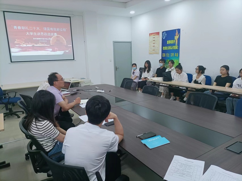 为深入贯彻落实习近平总书记关于“大思政课”的重要指示批示精神,充分发挥高校思政课立德树人关键课程作用,坚持不懈用习近平新时代中国特色社会主义思想铸魂育人,根据江苏省委教育工委《关于开展习近平新时代中国特色社会主义思想大学习领航计划主题教育活动的通知》、《“青春献礼二十大,强国有我新征程”迎接学习宣传党的二十大主题宣传教育活动工作方案》等通知要求,beat365官网马克思主义学院于6月28日在会议室举办以“青春献礼二十大·强国有我新征程”为主题的大学生讲思政选拔赛。