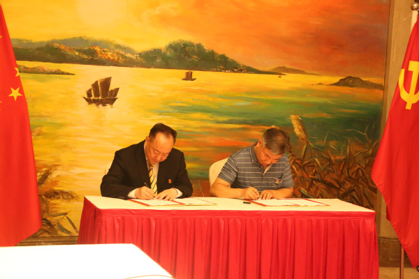 为创新基层党建工作载体,提高基层党建工作水平,本着“资源共享、优势互补、互相促进、共同提高”的原则,2022年7月1日上午,国际商学院党总支与苏州东山宾馆党支部在东山宾馆开展党建结对共建签约仪式。我院党总支书记、院长王则斌,东山宾馆党支部书记、总经理周苏国代表签约,校企双方党组委员共同参加此次活动。