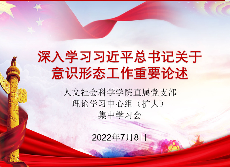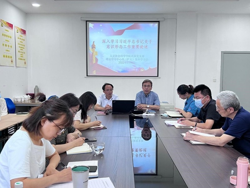 7月8日上午,人文社会科学学院直属党支部在学院会议室召开了理论学习中心组(扩大)集中学习会,学习贯彻习近平总书记关于意识形态工作重要论述。本次学习会由学院副院长兼马克思主义学院院长吴歧范担任领学,院长黄兴主持并做重点发言,全体教职工参加了学习。