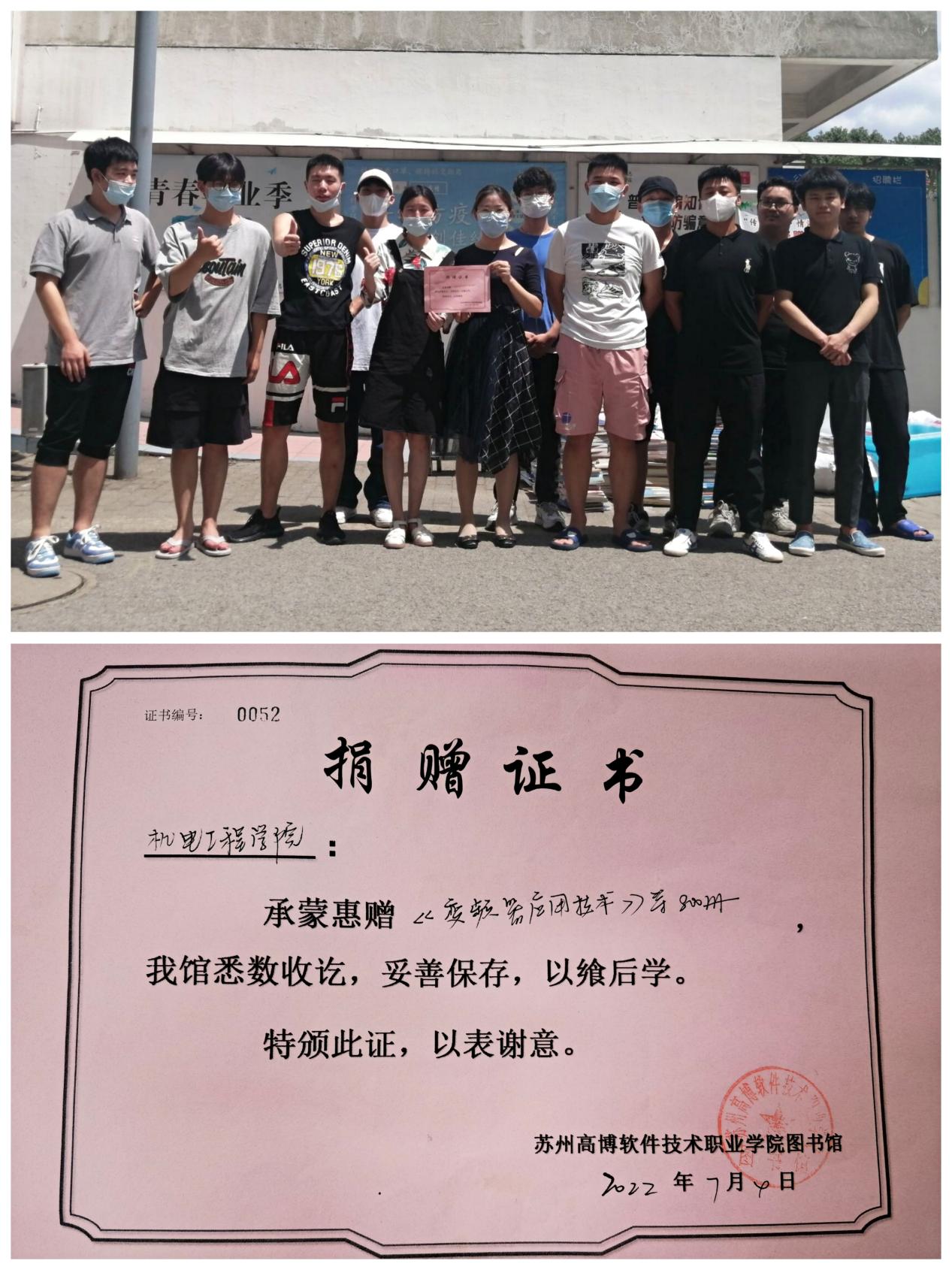 活动开展前,机电学院团委部署落实各班班委做好本班捐赠图书的动员及收集工作,并记录好捐赠的数量。本次的图书捐赠活动,通过辅导员老师们的精心筹备和学生们积极参与,共捐赠教育教辅类、文学杂志类、经典励志类等相关图书800余册。为表扬同学们的无私奉献精神,学校图书馆给机电工程学院颁发了《捐赠证书》,以表谢意。学生捐赠书籍使图书得到了再次利用,避免了资源的浪费,为学院师生提供了更多的图书资源。