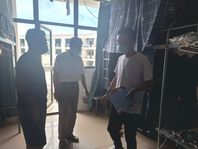 为深入了解机电工程学院2021级暑期工学结合学生的思想动态、工作状态和生活情况,做好留校学生关心关爱、服务保障工作。自机电学院工学结合工作开始以来,机电工程学院副院长张茂青、工学结合指导教师庄旭老师以及学生辅导员杜相锋老师一行多次深入学生宿舍,实地了解学生生活情况,并为学生送去关心和问候。