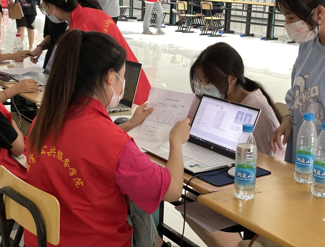2022年9月12日上午七时迎新工作如火如荼地展开,从火车站开始到学校,各处都是志愿者们忙碌的身影。志愿者从学校一号门迎接新生、耐心地给家长和新生们解答各种问题,并引导新生们从办理手续、注册报道、核酸采样以及前往新校区,到达宿舍楼分配宿舍,还有热情的志愿者们会主动帮着拎行李,一路谈笑风生。