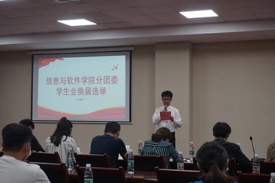 2022年9月19日晚,信息与软件学院学生会换届选举大会在行政楼会议室顺利举行。学院分团委书记赵楠老师、学院各级辅导员、第14届学生会主席团成员及各部门部长参加了本次会议。