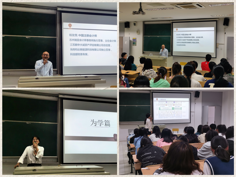 为帮助2022级新生尽快完成角色转换,迅速融入校园生活,合理规划职业生涯,提升专业认同,增强专业认知,顺利开启大学学涯的第一扇门。依照国际商学院统一部署,会计金融系精心准备,于9月28日下午2点,2022级大数据与会计专业在教学楼307教室开展了一次新生入学教育专题活动。本次活动由会计金融系副主任陈莉崟老师主持,并邀请到了嘉宾苏州瑞亚会计师事务所所长杨友隽先生出席。