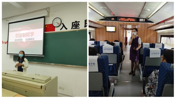 系部特邀空中乘务专家费道静与高铁乘务专业企业导师袁娟、刘新潮分享行业发展前景,积极引导新生做好学业规划与职业规划,明确学习目标,合理规划大学生活。高年级学姐周欣雨分享自己在校学习和生活的经验,并给出了在大学学习生活的建议。新生们通过学习前人的经验,将更好地看清脚下和前方的路,他们的大学生活也必然将更加丰富而精彩!