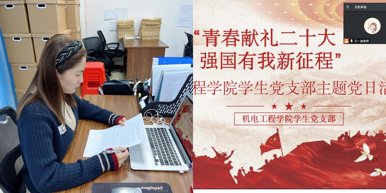 为回顾中国共产党的百年奋斗历程,深入贯彻落实习近平总书记关于青年工作的重要思想,迎接党的二十大。2022年10月10日晚上8点半,机电工程学院学生党支部在线上召开以“青春献礼二十大、强国有我新征程”的主题党日活动。会议由机电工程学院学生党支部书记王一迪老师组织主持,机电工程学院2022年发展对象和积极分子参加。