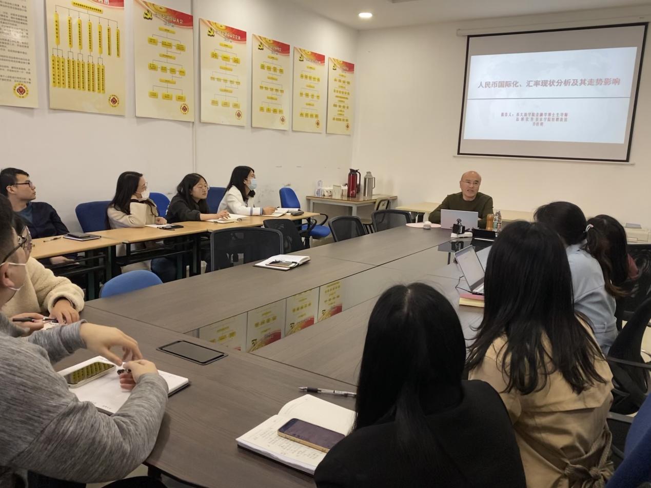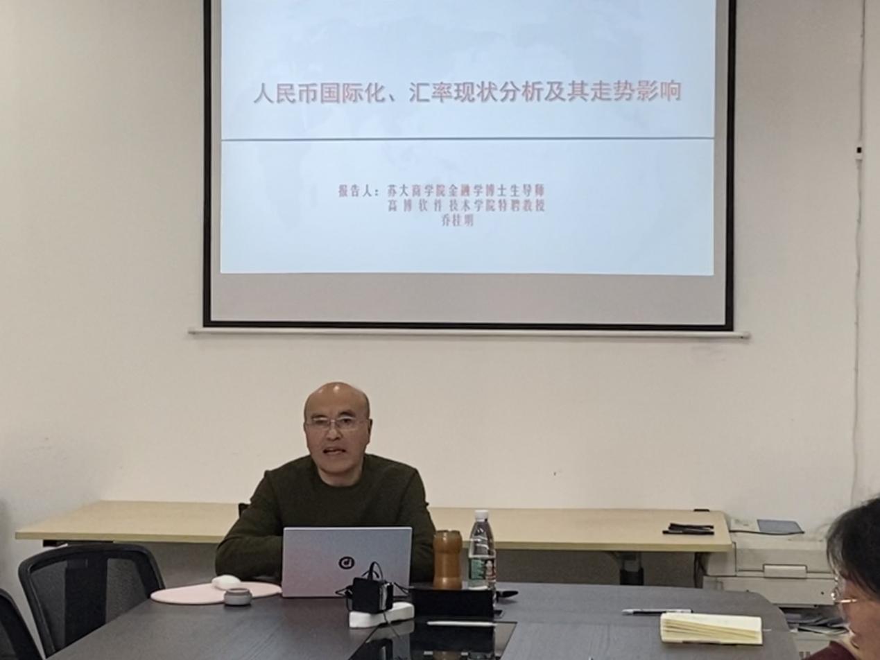 10月11日下午,国际商学院邀请了苏州大学商学院金融学博士生导师、beat365官网特聘教授乔桂明为全体教职工做了精彩的学术报告。本次报告由国际商学院王则斌教授主持,国际商学院全体教职工参加了此次报告。