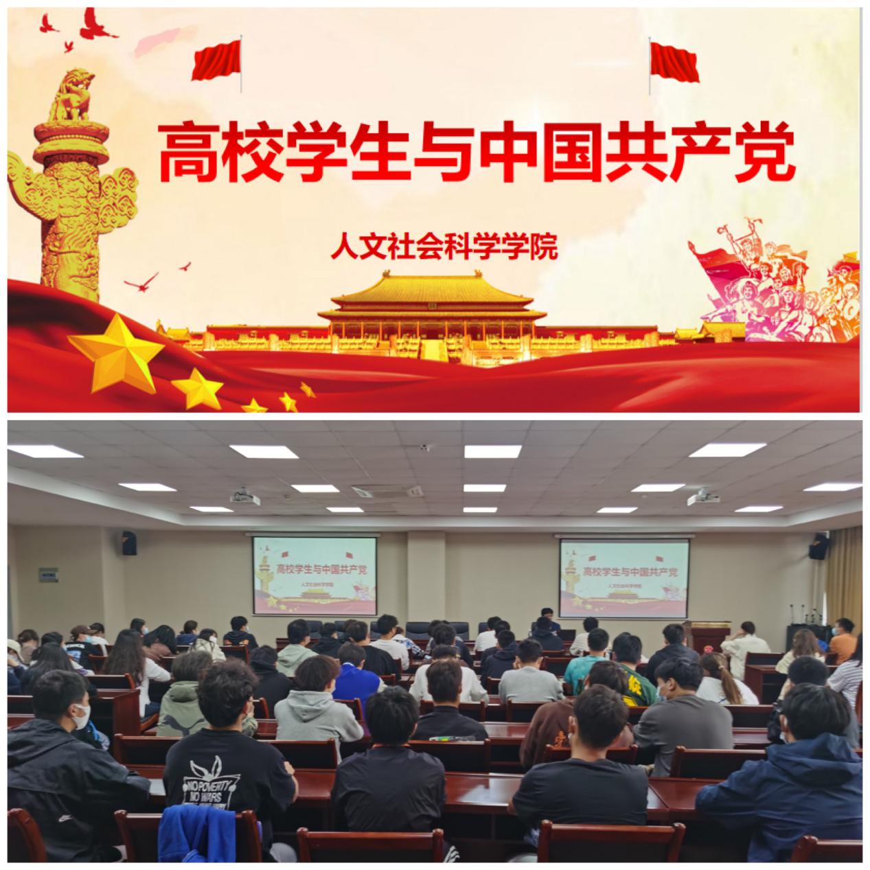 10月14日下午,人文社会科学学院在行政楼215会议室举办2022级新生第一堂党课,校长助理、学院直属党支部书记吴建明为新生作了题为“高校学生与中国共产党”的专题报告。院学工办主任赵雪飞、辅导员吴敬德以及2022级全体新生参加了党课。