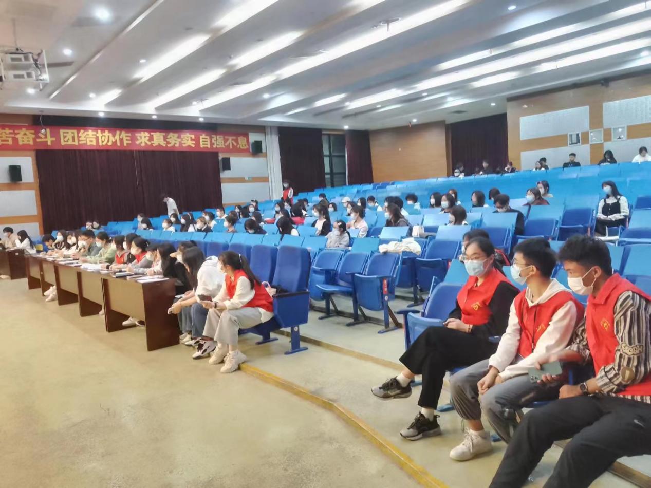 活动开始前,医学与公共服务学院的志愿者们提前两个小时进入报告厅布置场地,调试音频设备。参与此次活动的志愿者夏雨说:“今天的活动是我进入青年学习社以来参加的第一次活动,我的内心非常的激动,对今晚的面试抱有热切的期望!”