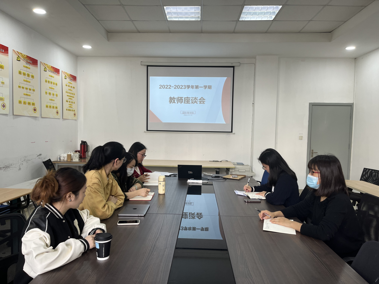 为全面了解师生对教学运行、人才培养、日常管理等方面的意见和建议,根据学校期中教学检查安排,国际商学院于11月11日下午在行政楼234会议室分别召开了学生座谈会和教师座谈会。参加此次座谈会的有我院教学副院长牛伟老师、各系副主任、各专业教师代表和教学秘书参加。两场座谈会均由牛伟副院长主持。