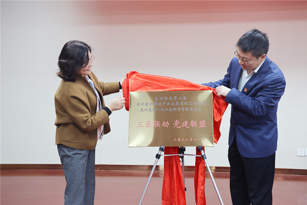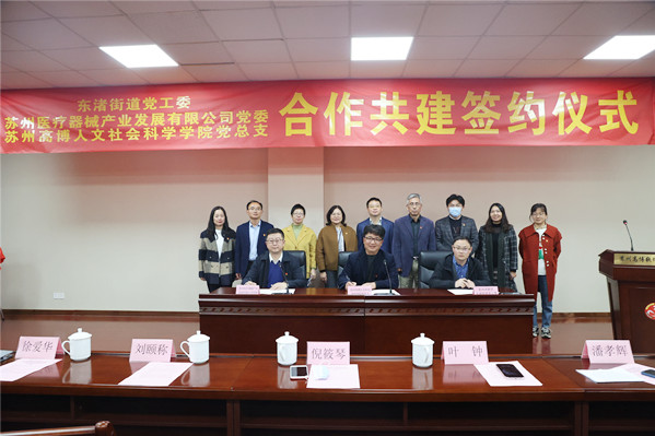 ——beat365官网人文社会科学学院党总支与苏州高新区东渚街道党工委、苏州医疗器械产业发展有限公司党委举行党建共建签约暨揭牌仪式