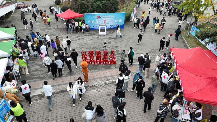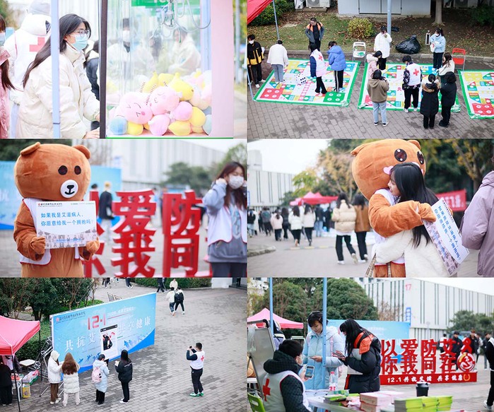 12月1日中午,学校食堂广场举行“12.1世界艾滋病日”广场宣传活动。今年的现场活动分为线上知识竞赛、现场防艾飞行棋挑战赛、防艾宣传我最行、防艾签名墙,保留了历年呼声最高的的防艾宣传我最行和真人飞行棋游戏答题闯关活动,新增了现场答题和抓娃娃环节,丰富多彩的活动,吸引了全校师生的目光。同学们积极参与现场活动,通过互动全方位加强了同学们对艾滋病的了解。现场答题共计238人次,参加飞行棋140人次,参与抓娃娃560人次。“防艾宣传我最行”朋友圈宣传活动共计点赞量达3165人次。免费发放《大学生预防艾滋病宣传手册》共计2000本,《青春健康知识读本》共计1000本,“了解艾滋病”彩色折页共计2000张。