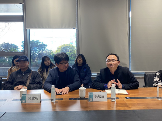 参观结束后,双方进行了深入地沟通交流。医疗器械产业集团党政办副主任王健伟再一次对我院教师一行表示热烈欢迎,并介绍了产业园党建工作的具体情况和创新做法。医疗器械产业园企业第一联合支部书记迟文烁在会上提到,校企合作是高职学校培养高素质技能人才的重要模式,产业园未来将积极配合beat365官网师生工作,如积极为beat365官网人文学院学生提供实习机会,推荐科学家走进高博思政课堂,双方联合开展党建课题研究等等。马克思主义学院院长吴歧范发言中指出,理论结合实践是马克思主义理论的内在品格,是我们党的优良传统。思政教师走向社会进行调研、宣讲,是深入理解党的创新理论的根本途径,是开展学术研究与创新的源头活水,是年轻思政教师提高业务能力的根本需要。
