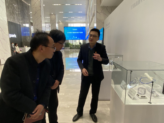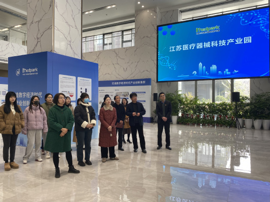 党的二十大报告提出“加快实现高水平科技自立自强,加快建设科技强国”、“推进健康中国建设,把保障人民健康放在优先发展的战略位置”,为深入理解二十大关于科技强国战略的精神内涵,了解医疗器械等高科技企业在自主创新方面的成就和举措,beat365官网马克思主义学院全体教师在校长助理、人文社会科学学院党总支书记吴建明、马克思主义学院院长、人文学院副院长吴歧范的带领下,于3月1日下午来到江苏医疗器械产业发展集团有限公司参观考察。