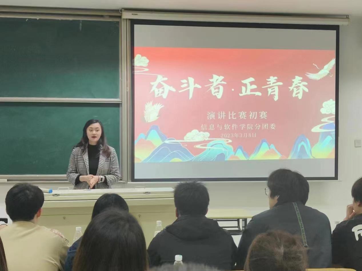 为深入学习贯彻习近平总书记对深入开展学雷锋活动的重要指示,引导广大学生牢记习近平总书记的教导,大力培育和践行社会主义核心价值观,弘扬雷锋精神,加强学生对雷锋精神内涵的理解,信息与软件学院分团委学生会于3月8日在12-306隆重举行了“奋斗者·正青春”演讲比赛初赛。