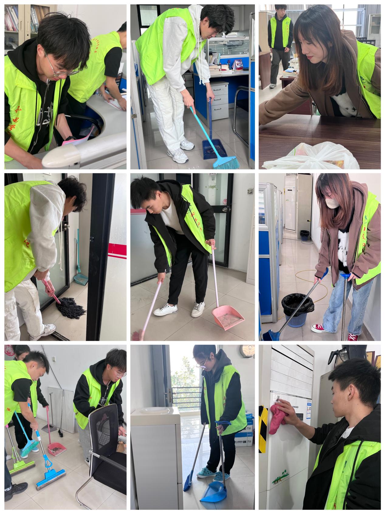 机电学院分团委于3月15日14:00在机电学院教师办公室开展“美容”清洁工作。活动中,机电学院学子积极参与,随处可见志愿者忙碌的身影。大家充分发挥“不怕脏、不怕苦、不怕累”的精神,拿着扫把、垃圾袋、拖把等工具进行打扫。经过大家的共同努力,志愿者们营造了一个舒适、干净、整洁的环境,同时为建设和谐美丽的校园贡献了自己的一份力量。