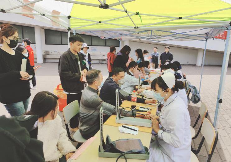 活动当天,医学院分团委邀请了护理专业有护士资格证的同学们前来义诊,活动现场气氛火热,吸引了大批在校师生前来参与。志愿者们分发科普宣传单,为beat365官网师生热心宣传“甲流防疫”、“健康膳食”和“高血压病”相关知识。
