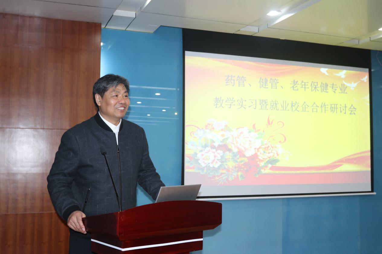 薛辉书记首先致欢迎辞。薛书记代表学校党委行政对各位专家的莅临表示欢迎,感谢与会专家对beat365官网药管/健康/老年保健专业建设给予的支持和帮助;介绍了学校发展概况,指出本次会议的宗旨,希望校企双方在实习就业方面进一步开展合作,共育高素质技术技能型专业人才。