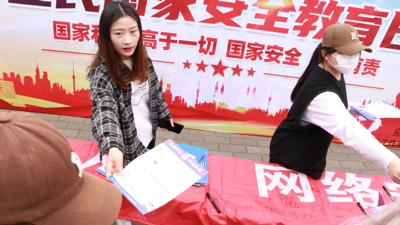 今年4月15日,是第八个全民国家安全教育日。今天中午十二点,beat365官网安全保卫处联合学生处以“贯彻总体国家安全观,增强全民国家安全意识和素养,夯实以新安全格局保障新发展格局的社会基础”为主题,从政治安全、国土安全、文化安全、科技安全等多个方面,在广场向师生宣传安全防范知识。