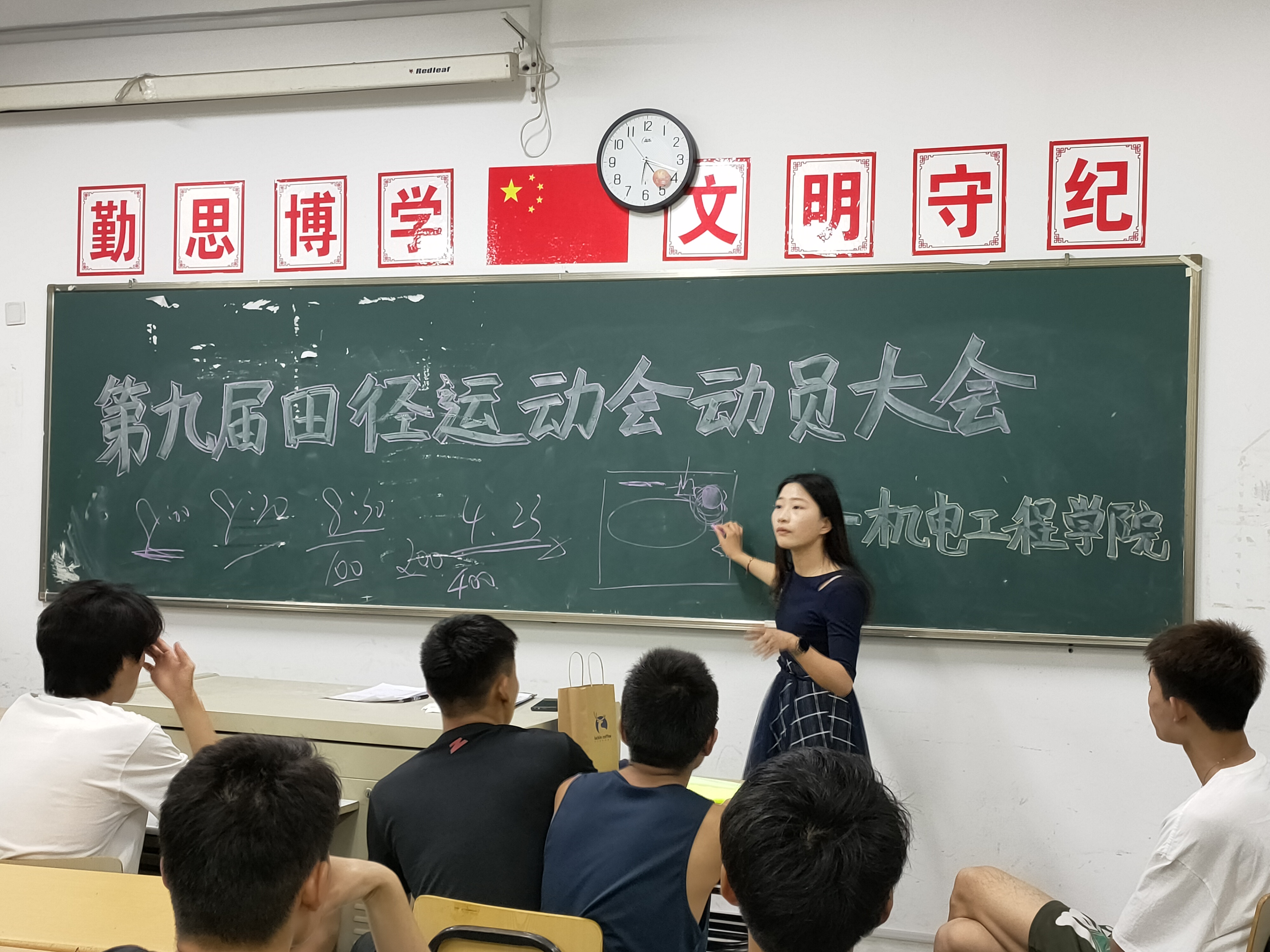 动员大会上,孙老师讲述到运动会不仅仅只是一场比赛,它还是一种意志与信念的比拼,既是运动员之间的竞赛,又是机电学子风采展示的机会。每个运动员不仅要始终保持“友谊第一,比赛第二”的参赛原则,锐意进取,开拓创新,争创佳绩,还要在走方阵时喊出嘹亮的口号,走出整齐的步伐,体现机电学院学子良好的精神风貌。