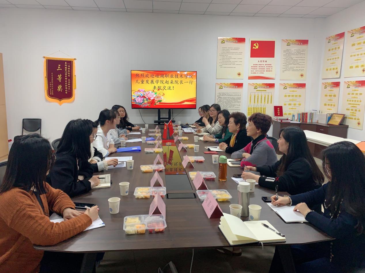 4月14日下午,硅湖职业技术学院儿童发展学院赵朵院长一行9人来我院进行专业交流。薛小玲校长特别助理、孙小娅院长、章晓莉副院长、蔡金娟副院长、幼教系主任张婷及幼教系相关教研室主任、专业教师参加交流会,会议由蔡金娟副院长主持。