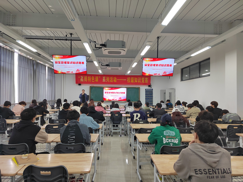为了进一步推进高博特色课的建设和实施,提高学生的生活实用技能和综合素质,学校于4月26日下午在新校区教学楼内成功举办了首届高博特色课知识竞赛活动。本次活动以《安全管理常识》为主题,来自各个二级学院的150多名学生积极参与了竞赛活动。