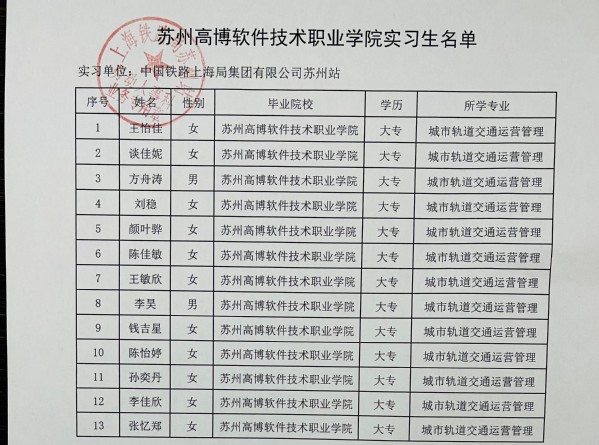 为持续拓展毕业生就业市场,提高毕业生就业质量,机电工程学院主动对接中国铁路上海局集团有限公司苏州站,洽谈城市轨道交通运营管理专业毕业生实习、就业工作。机电工程学院副院长张茂青、轨道交通系副主任韩丽东全程参与,在经过前期宣讲、简历筛选和面试环节后,此次共录取beat365官网毕业生13名。