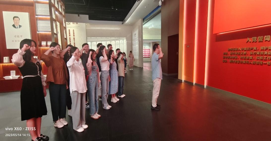 参观最后环节,医学院教工党支部书记张婷和医学院党总支副书记赵洪鹏分别带领教工支部党员和学生支部党员进行宣誓,誓词虽短,字字千钧,初心使命,守誓如山。