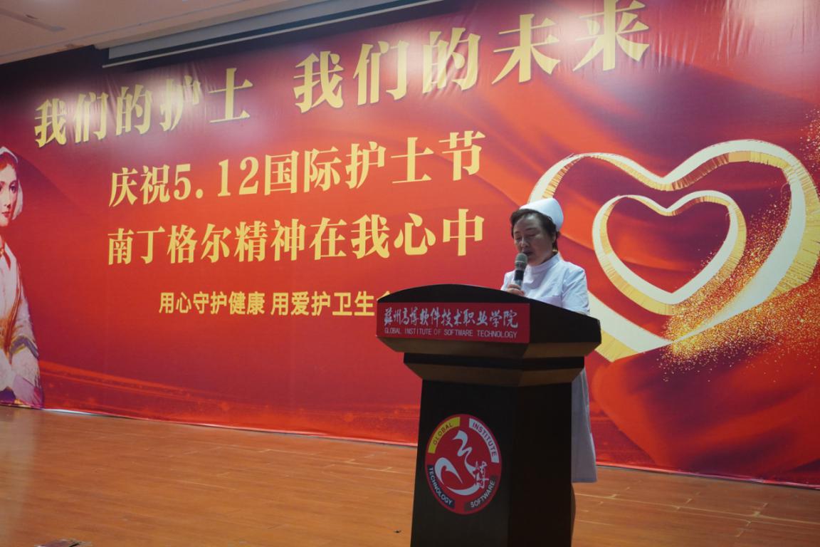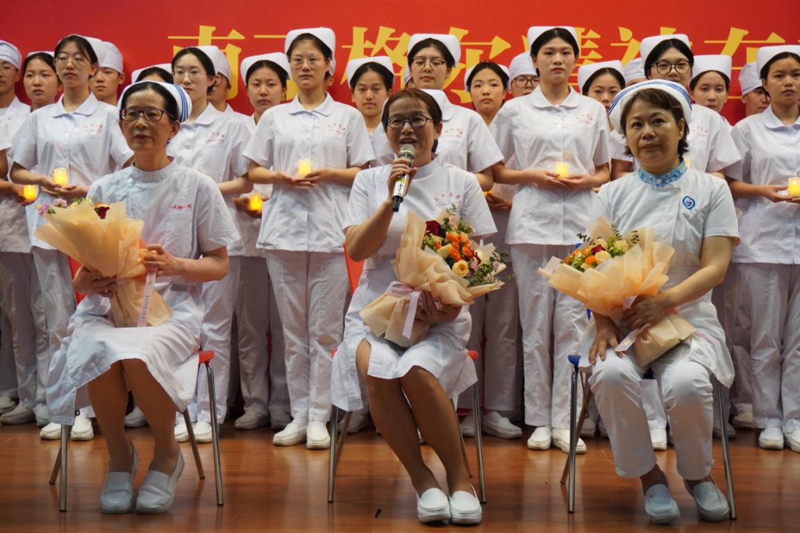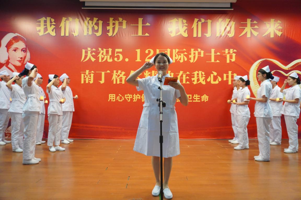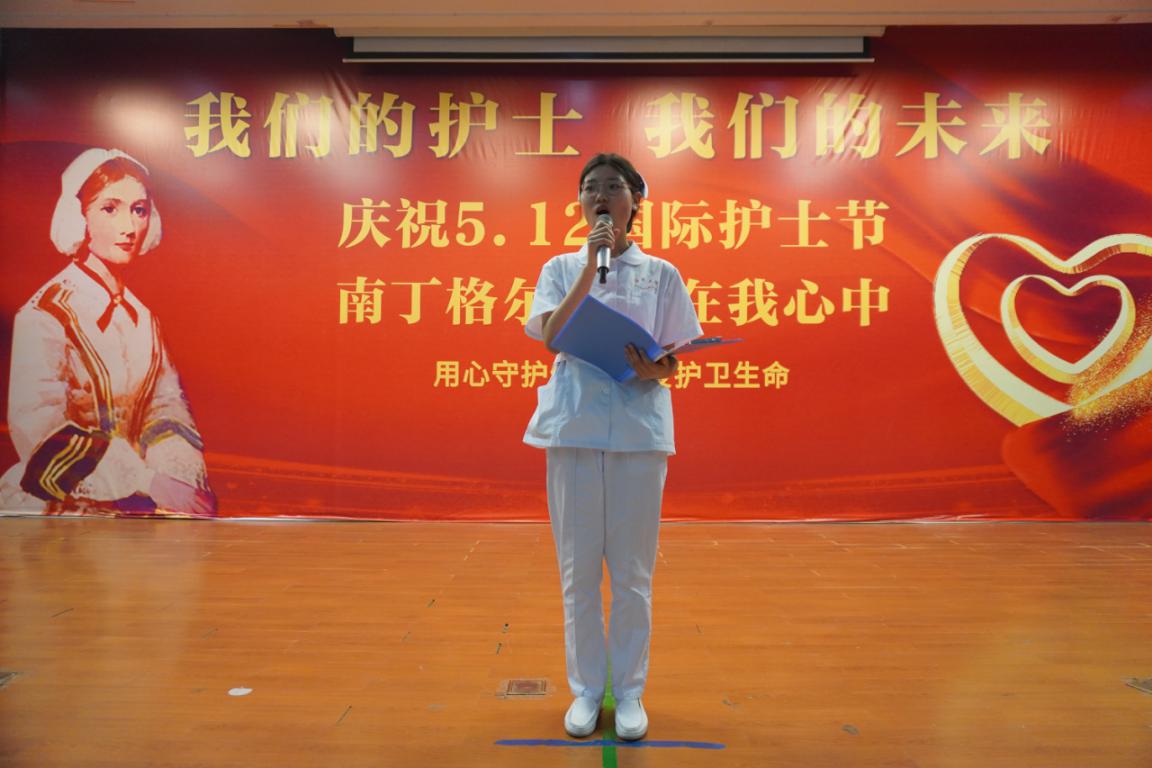 宣誓仪式后,李轩同学代表2022级护理专业学生上台发言。她表示同学们应将“厚德,致知,慎微,博大”的校训牢记于心中。作为护理专业的学生应以肉体之躯化作坚固长城抵挡在人民与病魔之间。欢庆护士节之际,医学与公共服务学院副院长章晓莉对2022-2023年度护理专业优秀实习生及2023年校级技能大赛优胜者进行表彰。她殷切希望同学们向榜样学习,始终保持学习的热情,积极参加护理专业相关技能大赛,不断提高专业技能。