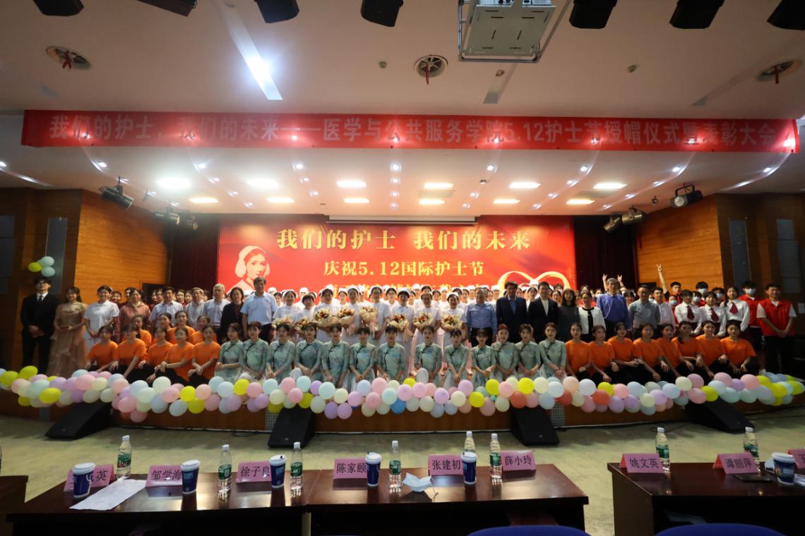 为纪念第112个国际护士节,传承护理文化精髓,点亮白衣天使梦,5月17日14:00,医学与公共服务学院在学术报告厅举行盛大的庆祝活动暨2022级护理专业学生授帽仪式。学校副校长陈家颐,校党委副书记、副校长徐子良,副校长张建初,副校长邹学海,副校长王凤英受邀出席;来自苏州护理界德高望重的前辈应邀莅临活动现场,并担任授帽嘉宾;学校各职能部门、各兄弟学院领导也出席了庆祝活动;医学与公共服务学院领导、护理专业全体师生们参加了此次活动。