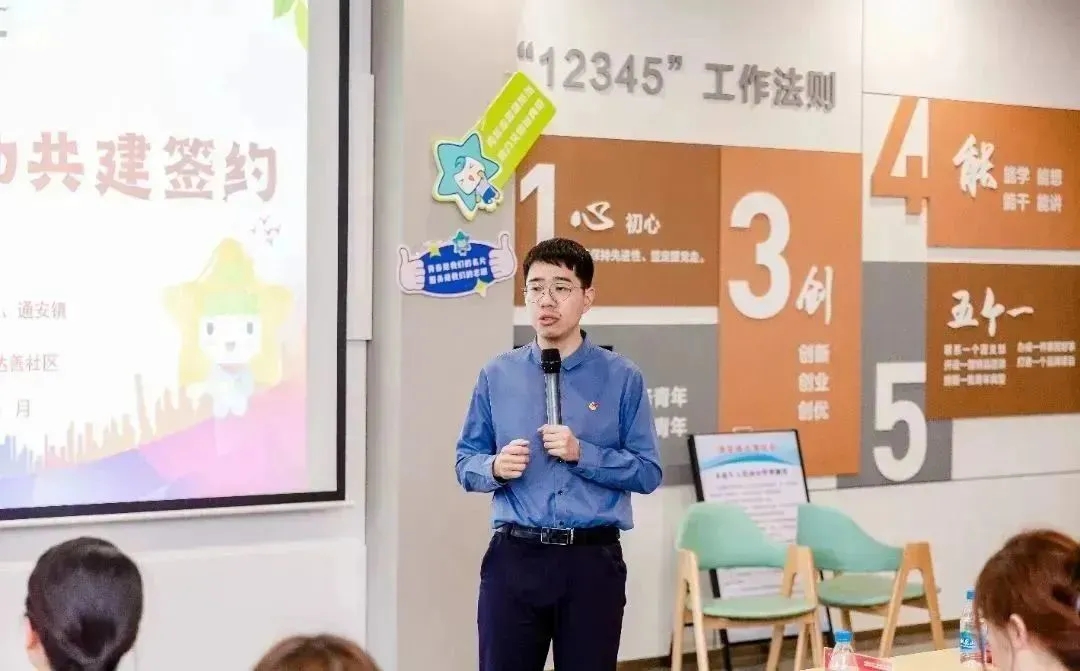 苏州高新区团委副书记陈峰在活动上致辞。他希望通过本次共建签约,通安镇团委和学校机电工程学院分团委能充分整合阵地资源为青年所用,提供学习、健身、休闲、社交、志愿服务、亲子互动等各类服务活动,面面俱到,样样俱全。