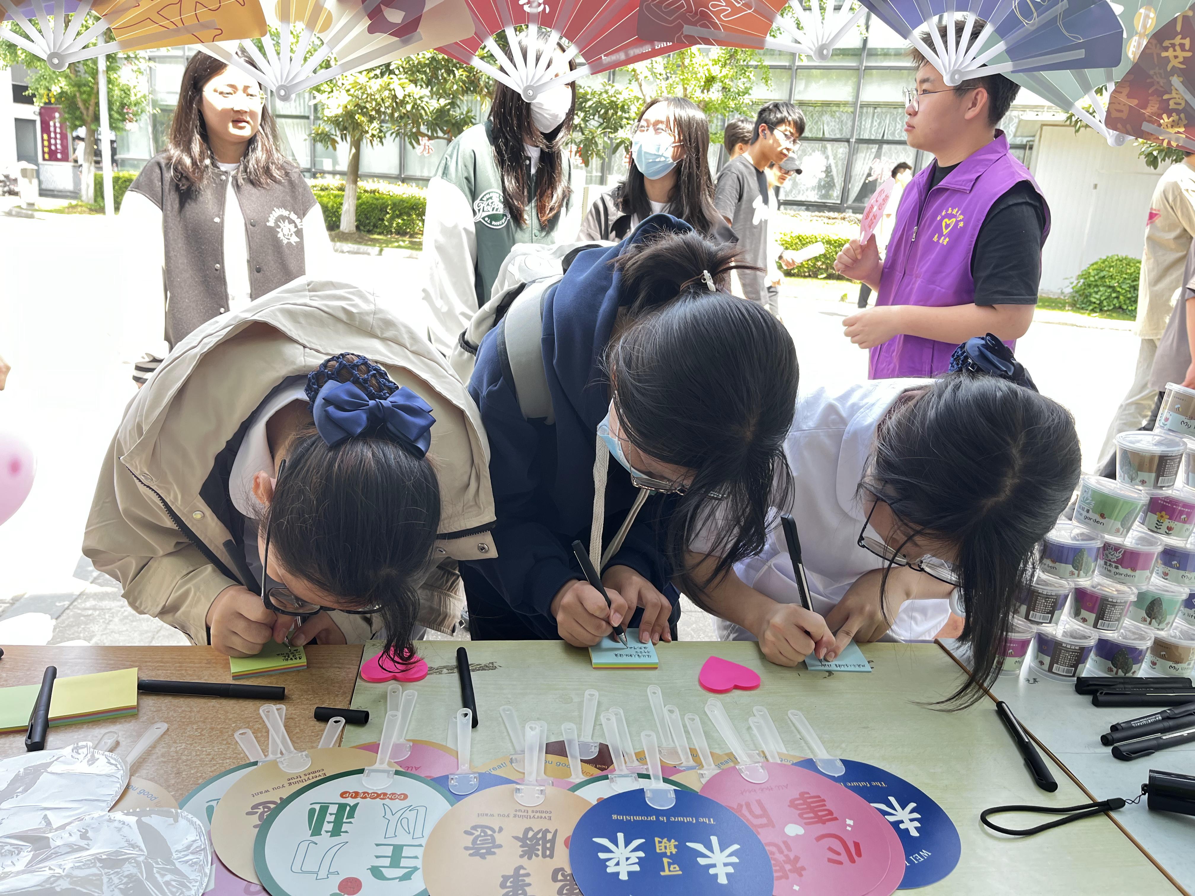 同学们在便签纸上留下对家人的祝福,并把写好的便签张贴在活动背景墙上,参与活动后领取礼品。活动引起同学们的极大反响,纷纷拿起手中的笔,在便利贴上写下对家人的祝福。同学们心存感恩,留下了祝愿家人平安喜乐、一帆风顺、健康顺遂等祝福语。现场氛围活跃热闹。