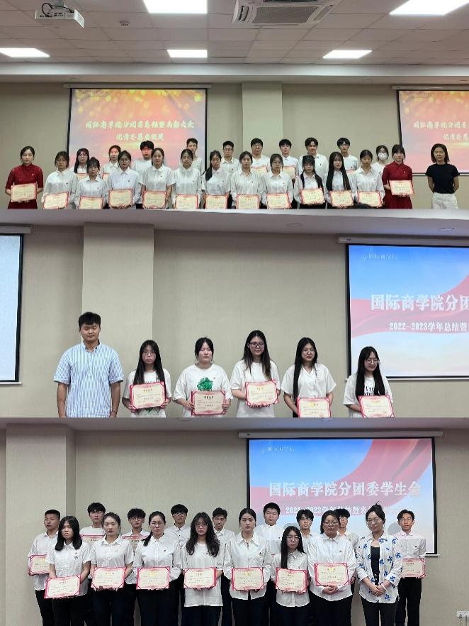 总结表彰大会是结束,也是新的开始,慎始敬终方能行稳致远。希望受表彰的同学们能继续努力,树立榜样,稳中求进。青年学生们要争向榜样学习,为国际商学院分团委的发展尽自己的一份力。(国际商学院分团委 姚瑶)