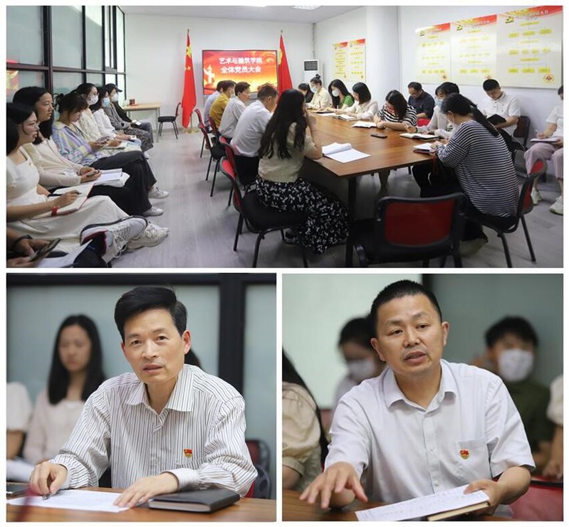 为进一步加强基层党组织政治建设、思想建设,组织建设、作风建设、纪律建设, 6月7日,艺术与建筑学院党总支在党员活动室召开全体党员大会,党总支书记、副院长施建平教授,党总支宣传委员、副院长江水明副教授,党总支组织委员、学生党支部书记李一帆老师,教工党支部书记吴兵副教授参加会议,会议由党总支书记、副院长施建平教授主持。