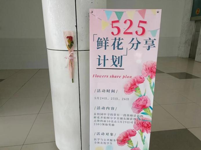 为了加强关注学生的心理健康,增进同学们之间的情感交流,医学与公共服务学院分团委即心理健康小组于5月24日至26日在校园内举办了“鲜花分享计划”的心理健康专题活动,并取得了很好的成效。