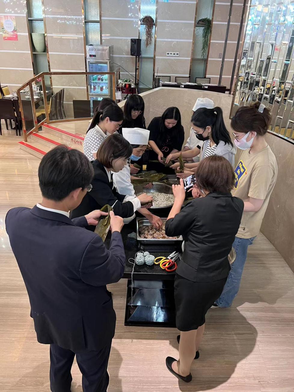 苏州东山宾馆一直以来与我院有着深厚的校企合作基础,双方本着实现党组织优势互补,党建促进业务的原则,努力构建“资源共享、优势互补、互相促进、共同提高”的党建新格局,开展了本次活动。首先由苏州东山宾馆党员同志带领老师们参观了东山宾馆的客房、餐厅等。然后双方党员同志在酒店内部电影院一同观看了纪录片《山河岁月之红星照耀中国》。习近平总书记指出:“中国共产党人的初心和使命,就是为中国人民谋幸福、为中华民族谋复兴。”作为教师党员,应该铭记历史,牢记现在美好生活的来之不易。艾德加斯诺用他的勇气和操守向世界介绍了这样一群人:即使他们身陷重围、物资匮乏、生活拮据,也丝毫不能动摇他们的信仰。时代的长河终将过去,而闪烁着英雄光芒的星空仍然灿烂,泱泱大国五千年积淀,铸就了一个又一个时代英雄,这些英雄或已经为中华革命奉献了宝贵的生命,或为中华民族伟大复兴作出了不可磨灭的贡献,或就在我们身边默默奉献。身为高校教师党员,我们更要有担当,有作为,时刻做好自己本职工作,要以泱泱华夏使命,续写中华民族之魂。也更应该守护并传承老一代革命先烈的初心,忠于共产党的领导,为党的事业奉献一切,将社会主义道路进行到底。最后,双方来到了东山宾馆的员工食堂,一同制作粽子,现场其乐融融。