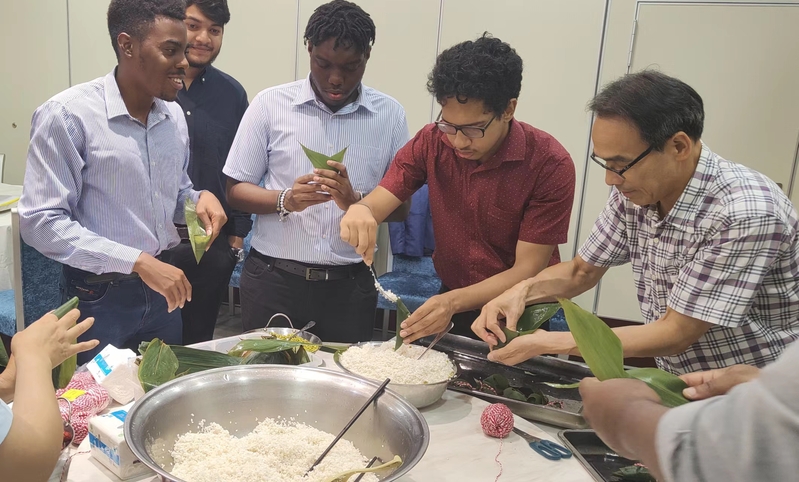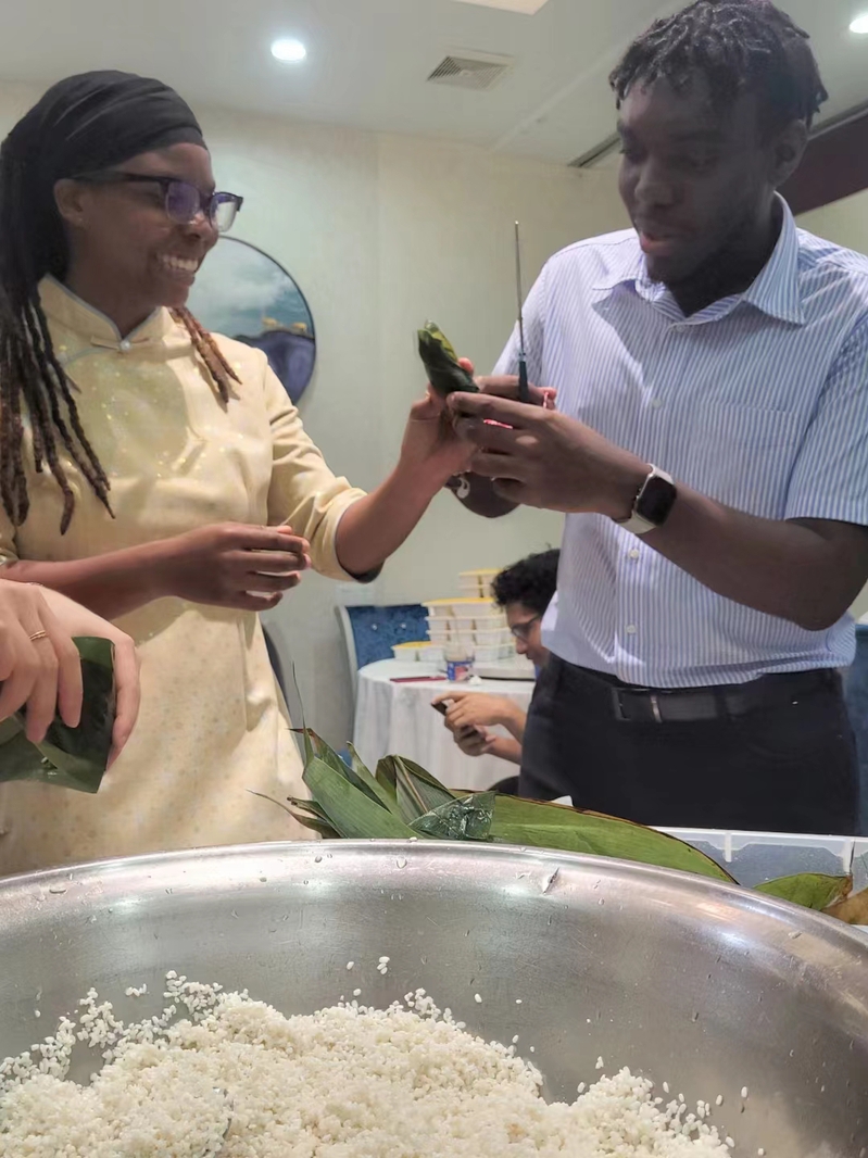 下午,国际处以“粽情粽意毕业季”为主题举办了端午节文化体验活动,与来自加勒比国家的留学生共同度过了一段感怀古人、彩线绕臂的难忘时光。